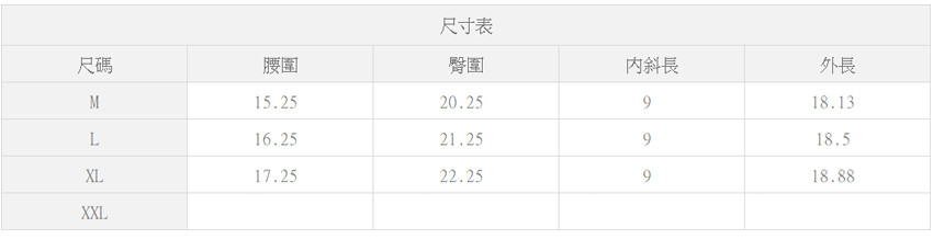 ※ 尺寸也會因商品材質、彈性、設計不同,可能會與實際尺寸略有誤差。