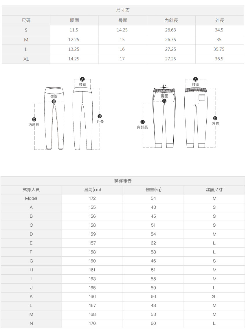 ※ 尺寸表及試穿報告僅提供尺碼對照資訊,實際合身程度則依據各款設計與各自身型會有所不同。