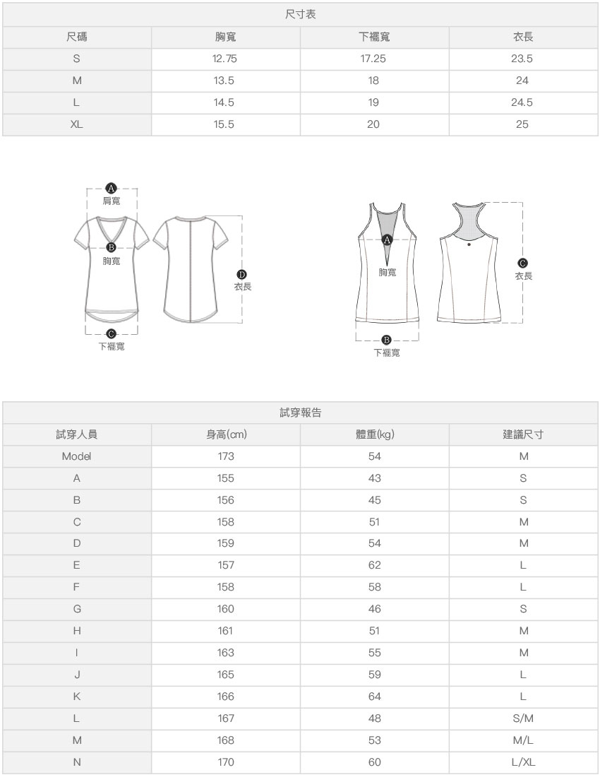 ※ 尺寸表及試穿報告僅提供尺碼對照資訊,實際合身程度則依據各款設計與各自身型會有所不同。
