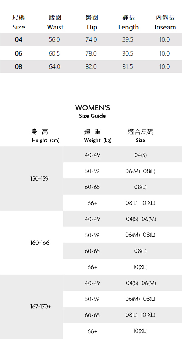 ※ 尺寸表及試穿報告僅提供尺碼對照資訊,實際合身程度則依據各款設計與各自身型會有所不同。