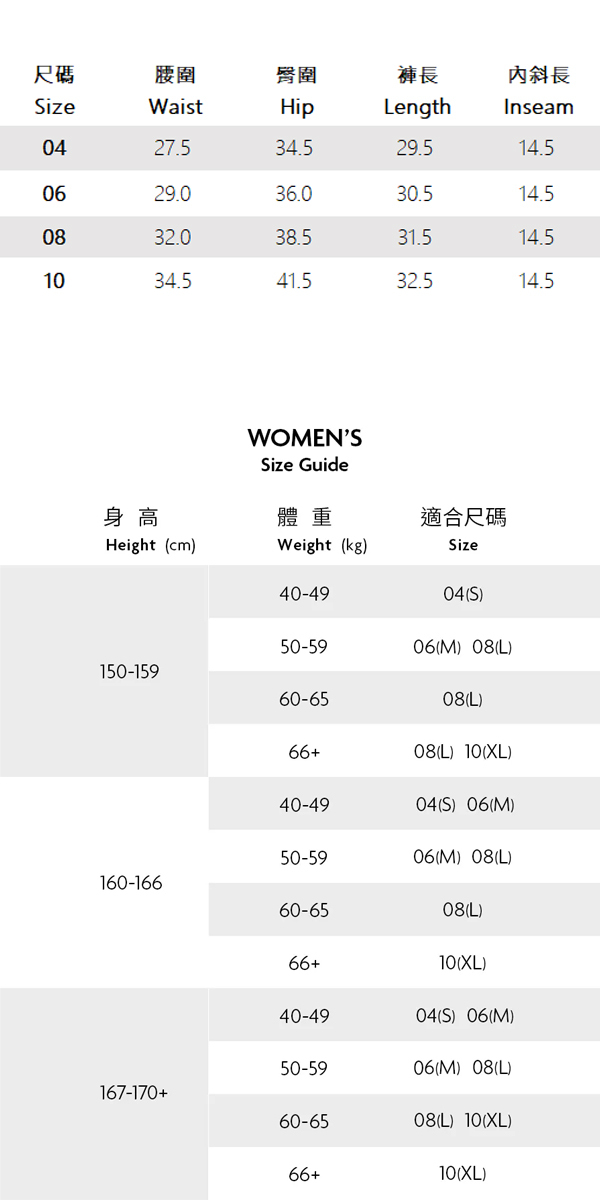 ※ 尺寸表及試穿報告僅提供尺碼對照資訊,實際合身程度則依據各款設計與各自身型會有所不同。