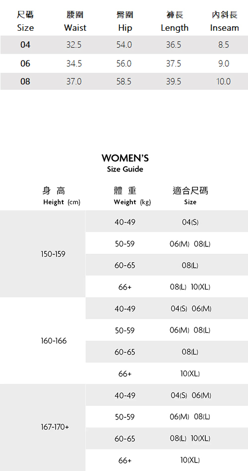 ※ 尺寸表及試穿報告僅提供尺碼對照資訊,實際合身程度則依據各款設計與各自身型會有所不同。