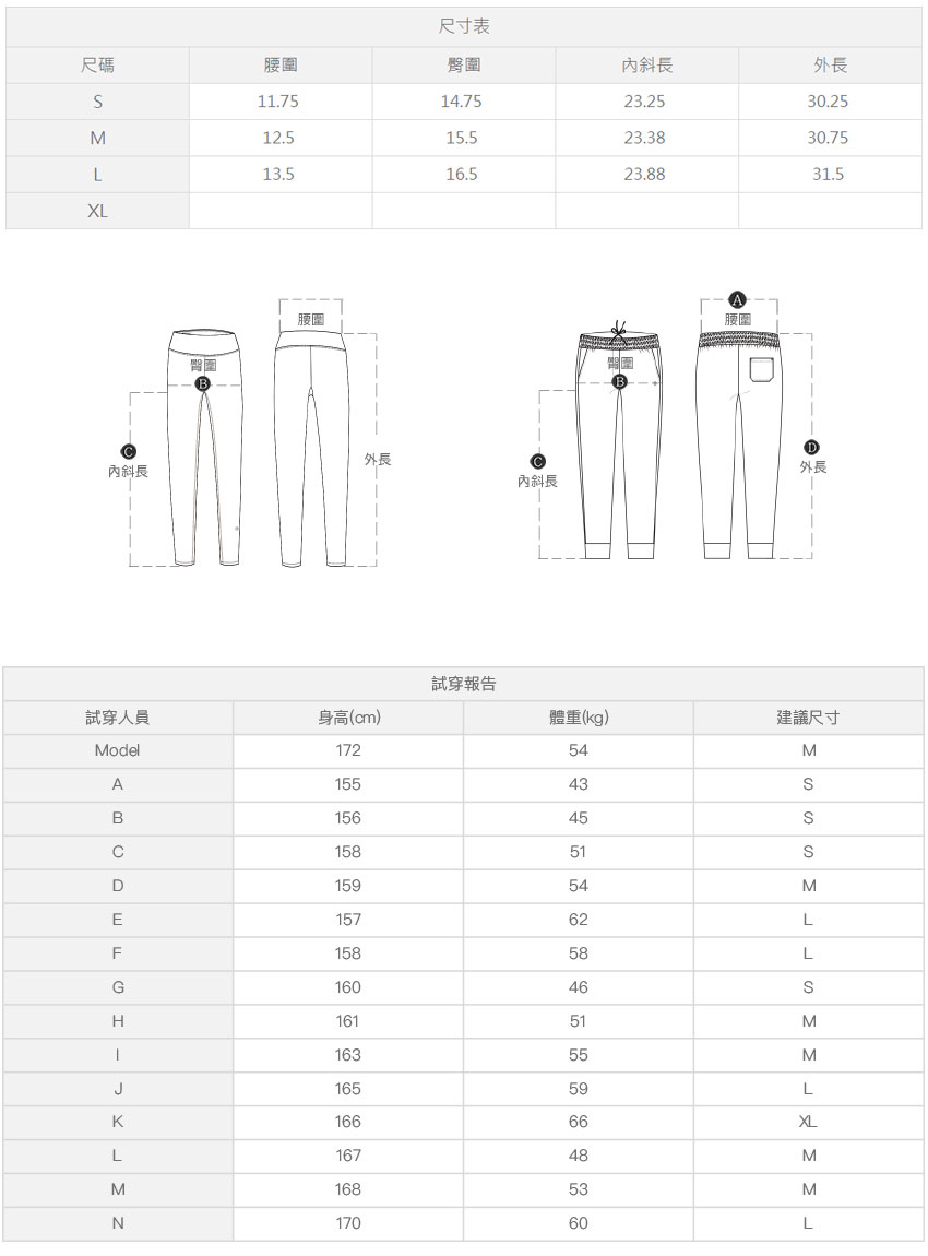 ※ 尺寸表及試穿報告僅提供尺碼對照資訊,實際合身程度則依據各款設計與各自身型會有所不同。