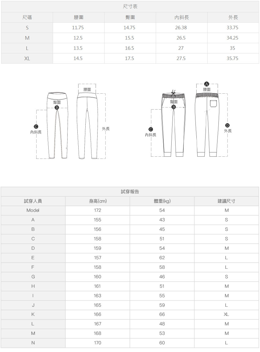 ※ 尺寸表及試穿報告僅提供尺碼對照資訊,實際合身程度則依據各款設計與各自身型會有所不同。