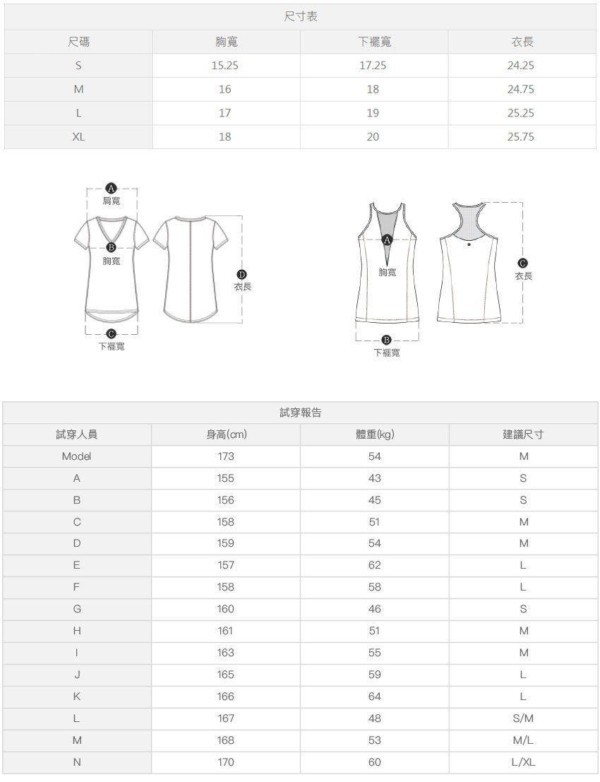 ※ 尺寸表及試穿報告僅提供尺碼對照資訊,實際合身程度則依據各款設計與各自身型會有所不同。