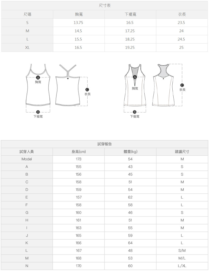 ※ 尺寸表及試穿報告僅提供尺碼對照資訊,實際合身程度則依據各款設計與各自身型會有所不同。