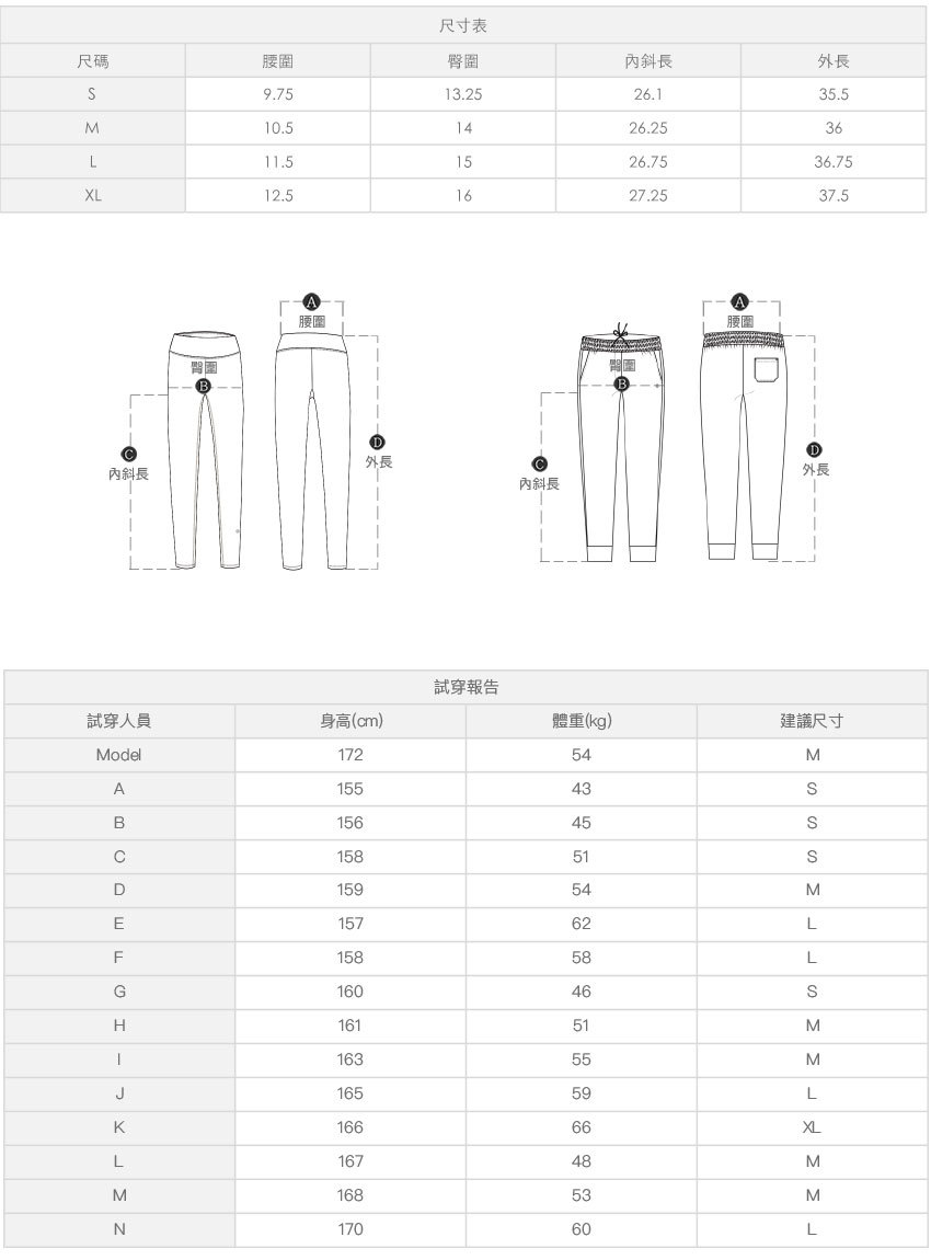 ※ 尺寸表及試穿報告僅提供尺碼對照資訊,實際合身程度則依據各款設計與各自身型會有所不同。