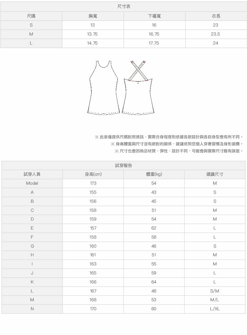 ※ 尺寸表及試穿報告僅提供尺碼對照資訊,實際合身程度則依據各款設計與各自身型會有所不同。