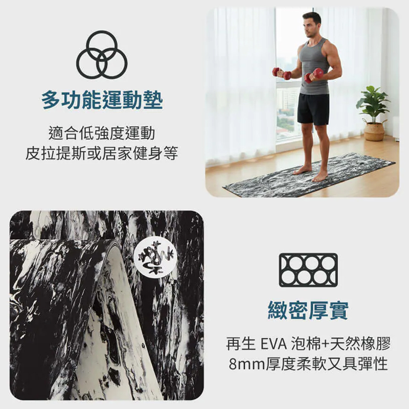 1. 超柔軟 8mm 厚度,提供更全面的緩衝與支撐,訓練時更舒適。
