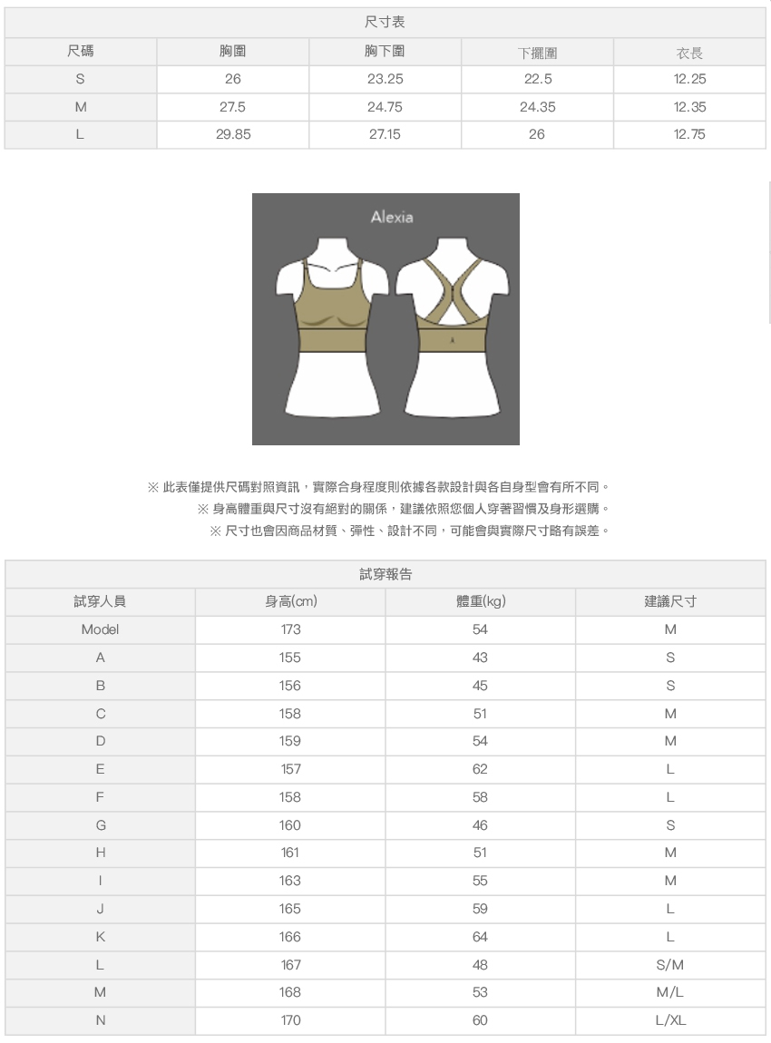 ※ 尺寸表及試穿報告僅提供尺碼對照資訊,實際合身程度則依據各款設計與各自身型會有所不同。