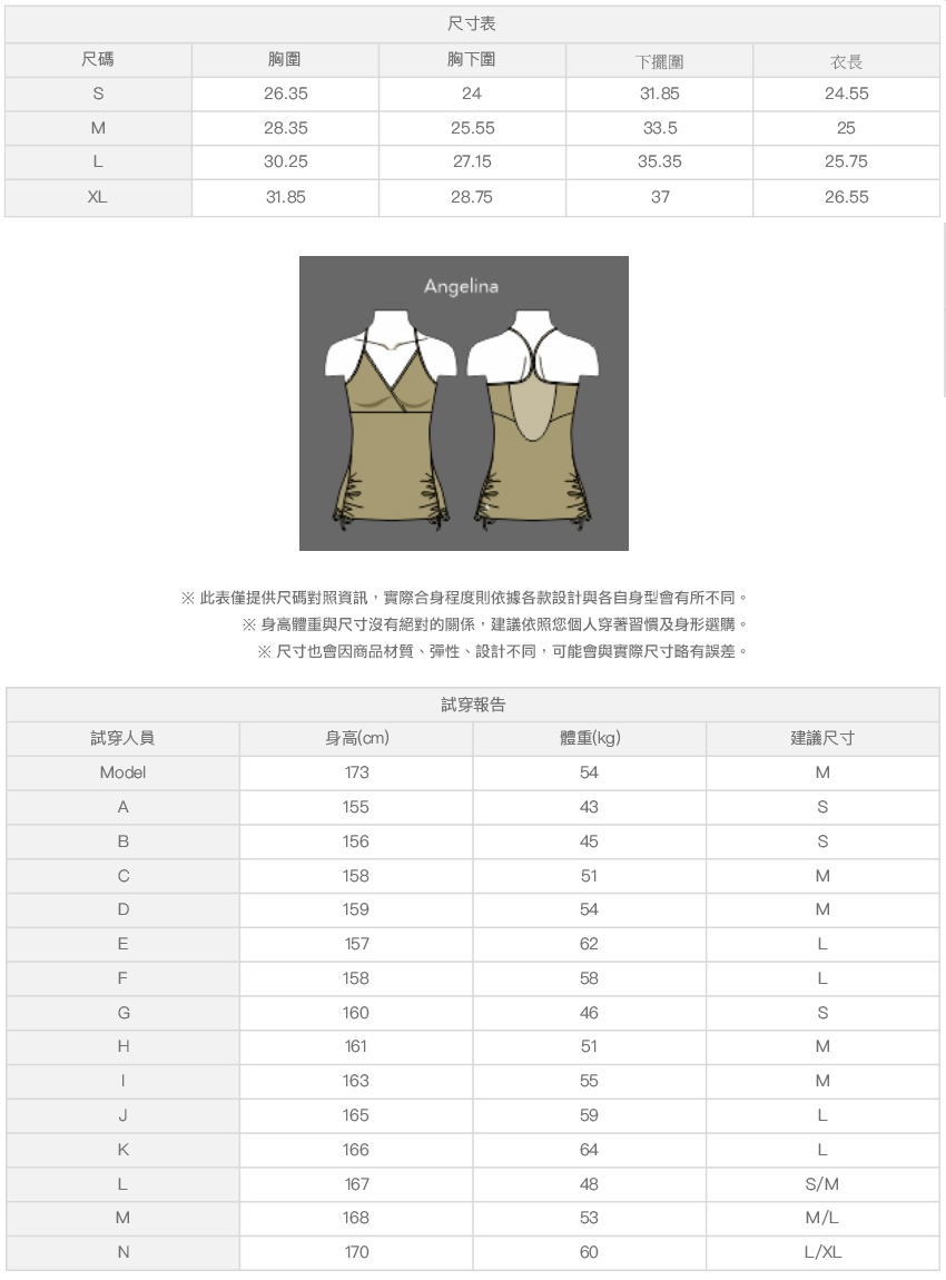 ※ 尺寸表及試穿報告僅提供尺碼對照資訊,實際合身程度則依據各款設計與各自身型會有所不同。