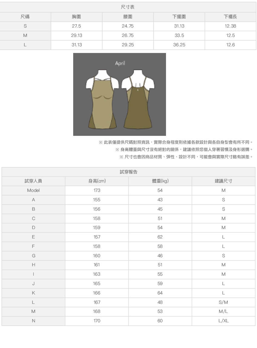 ※ 尺寸表及試穿報告僅提供尺碼對照資訊,實際合身程度則依據各款設計與各自身型會有所不同。