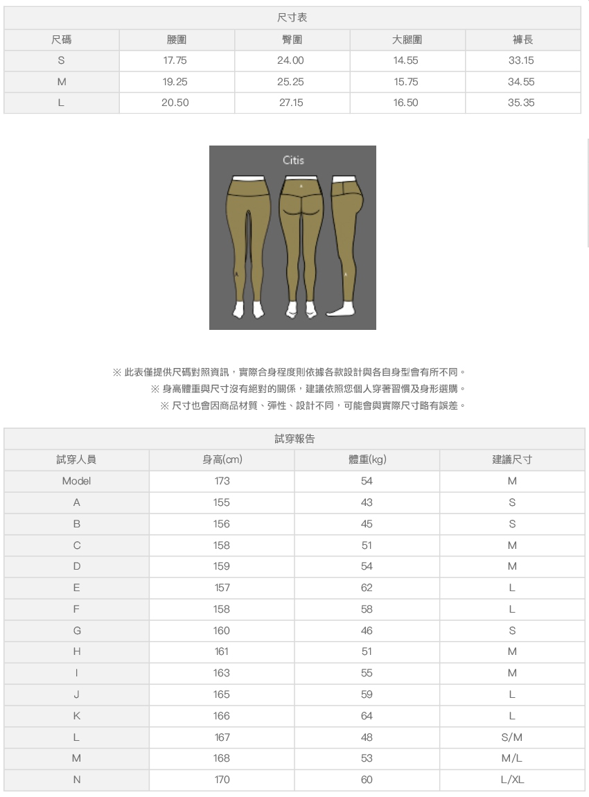 ※ 尺寸表及試穿報告僅提供尺碼對照資訊,實際合身程度則依據各款設計與各自身型會有所不同。