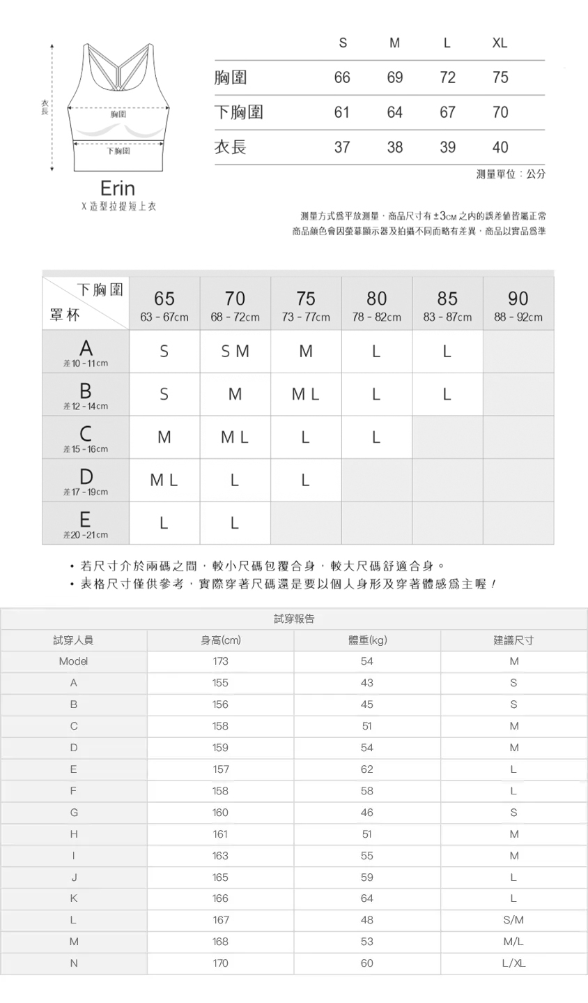 ※ 尺寸表及試穿報告僅提供尺碼對照資訊,實際合身程度則依據各款設計與各自身型會有所不同。