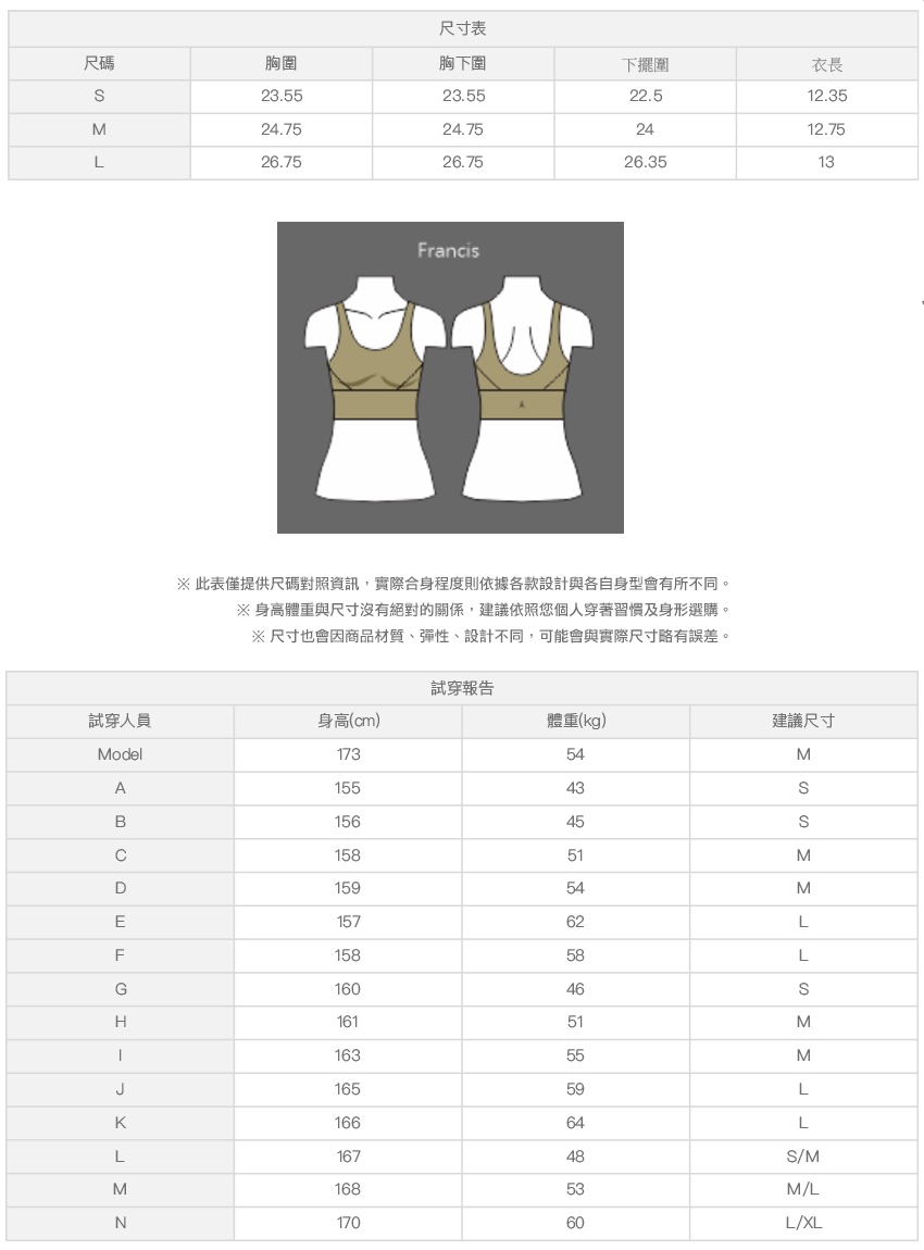 ※ 尺寸表及試穿報告僅提供尺碼對照資訊,實際合身程度則依據各款設計與各自身型會有所不同。