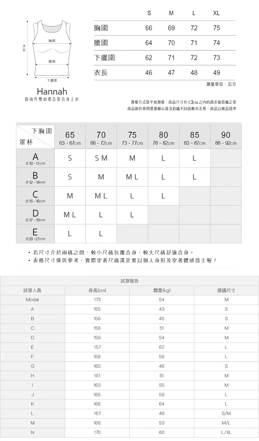 ※ 尺寸表及試穿報告僅提供尺碼對照資訊,實際合身程度則依據各款設計與各自身型會有所不同。