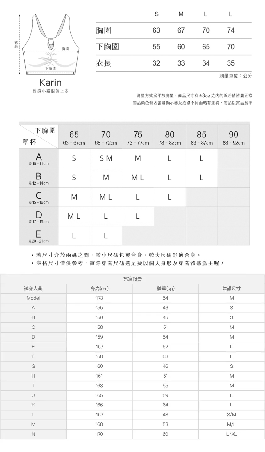 ※ 尺寸表及試穿報告僅提供尺碼對照資訊,實際合身程度則依據各款設計與各自身型會有所不同。