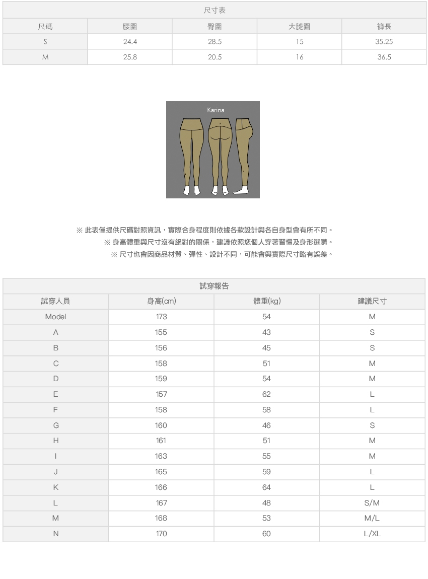 ※ 尺寸表及試穿報告僅提供尺碼對照資訊,實際合身程度則依據各款設計與各自身型會有所不同。