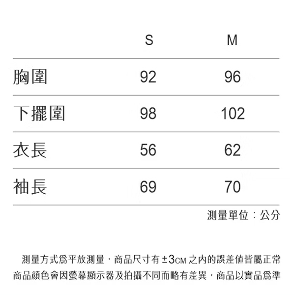 3. 尺寸也會因商品材質、彈性、設計不同,可能會與實際尺寸略有誤差。
