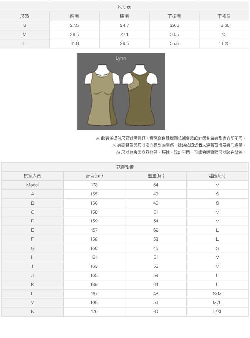 ※ 尺寸表及試穿報告僅提供尺碼對照資訊,實際合身程度則依據各款設計與各自身型會有所不同。