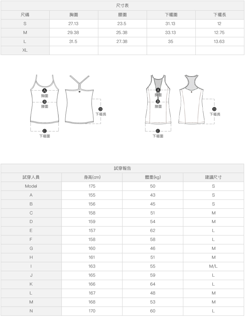 ※ 尺寸表及試穿報告僅提供尺碼對照資訊,實際合身程度則依據各款設計與各自身型會有所不同。