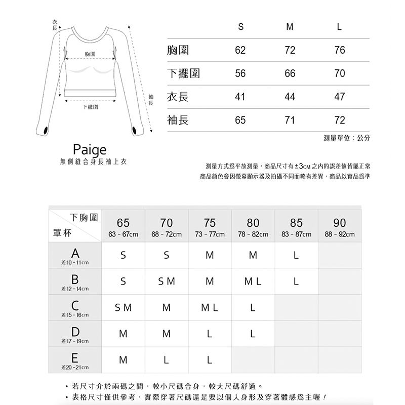 ※ 尺寸表及試穿報告僅提供尺碼對照資訊,實際合身程度則依據各款設計與各自身型會有所不同。