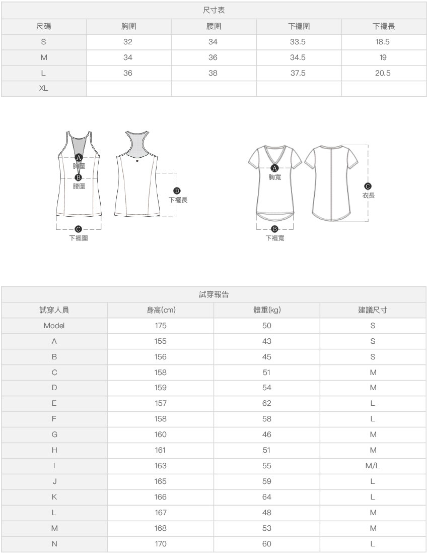 ※ 尺寸表及試穿報告僅提供尺碼對照資訊,實際合身程度則依據各款設計與各自身型會有所不同。