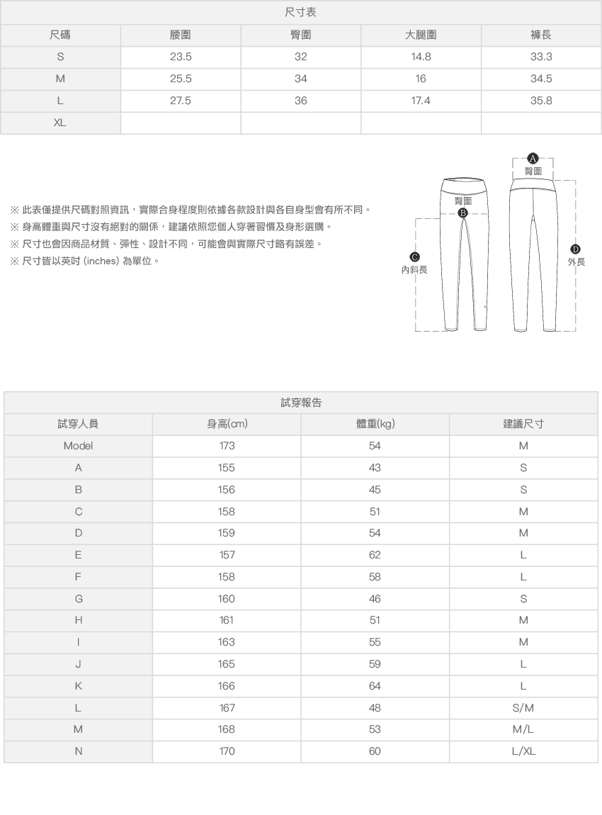 ※ 尺寸表及試穿報告僅提供尺碼對照資訊,實際合身程度則依據各款設計與各自身型會有所不同。
