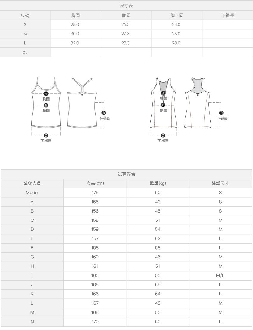 ※ 尺寸表及試穿報告僅提供尺碼對照資訊,實際合身程度則依據各款設計與各自身型會有所不同。