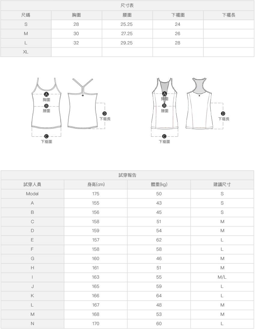 ※ 尺寸表及試穿報告僅提供尺碼對照資訊,實際合身程度則依據各款設計與各自身型會有所不同。