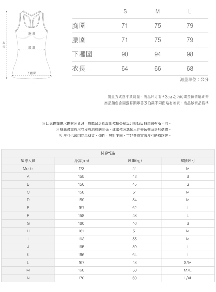 ※ 尺寸表及試穿報告僅提供尺碼對照資訊,實際合身程度則依據各款設計與各自身型會有所不同。