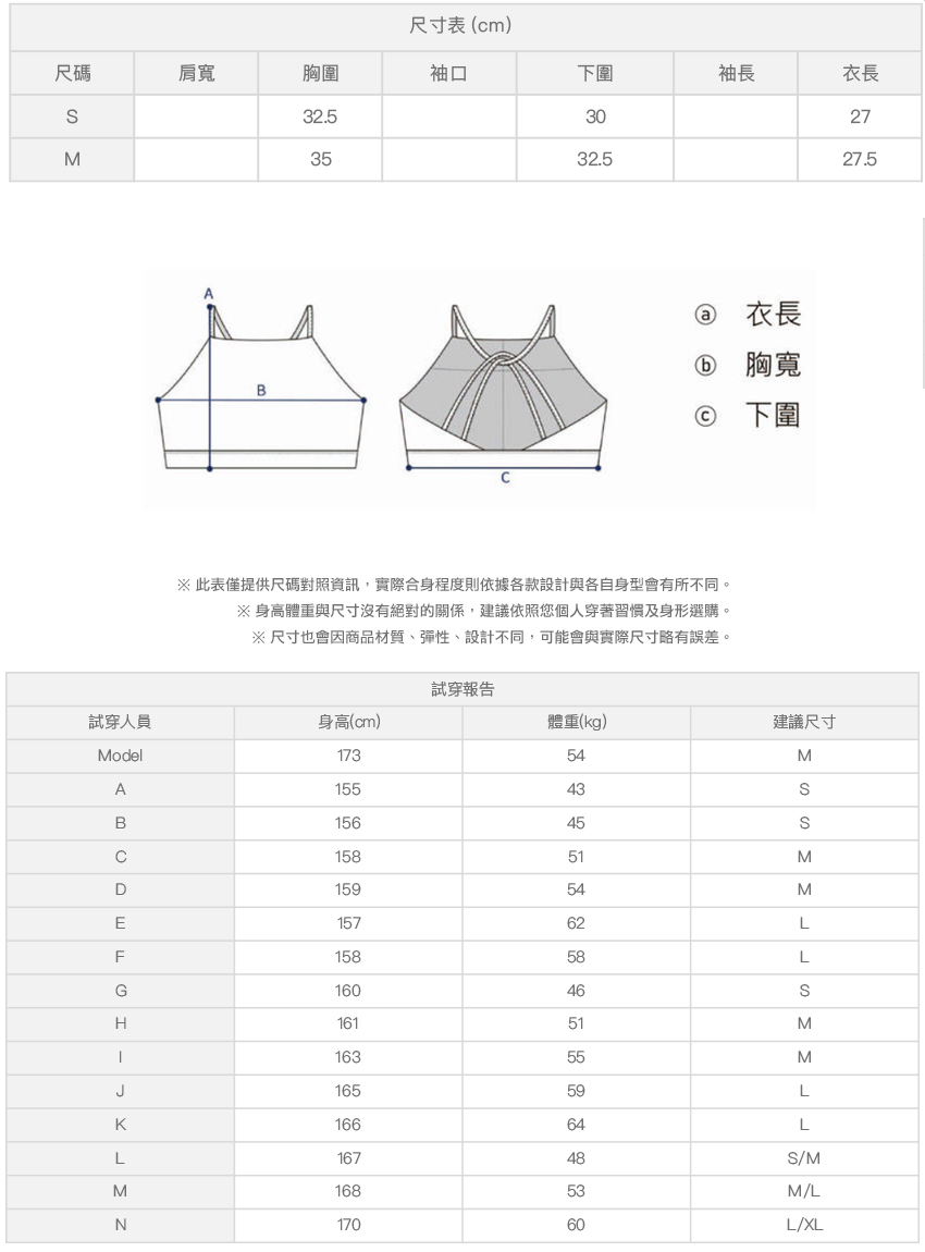 ※ 尺寸表及試穿報告僅提供尺碼對照資訊,實際合身程度則依據各款設計與各自身型會有所不同。