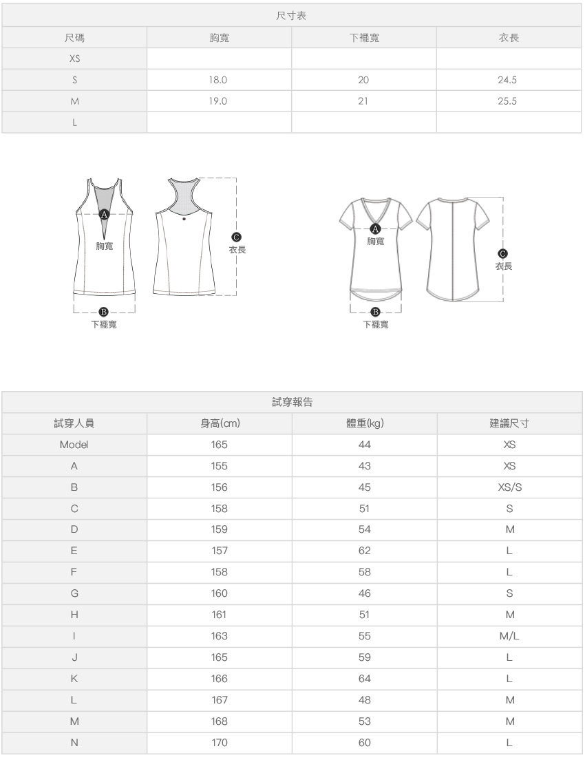 ※ 尺寸表及試穿報告僅提供尺碼對照資訊,實際合身程度則依據各款設計與各自身型會有所不同。