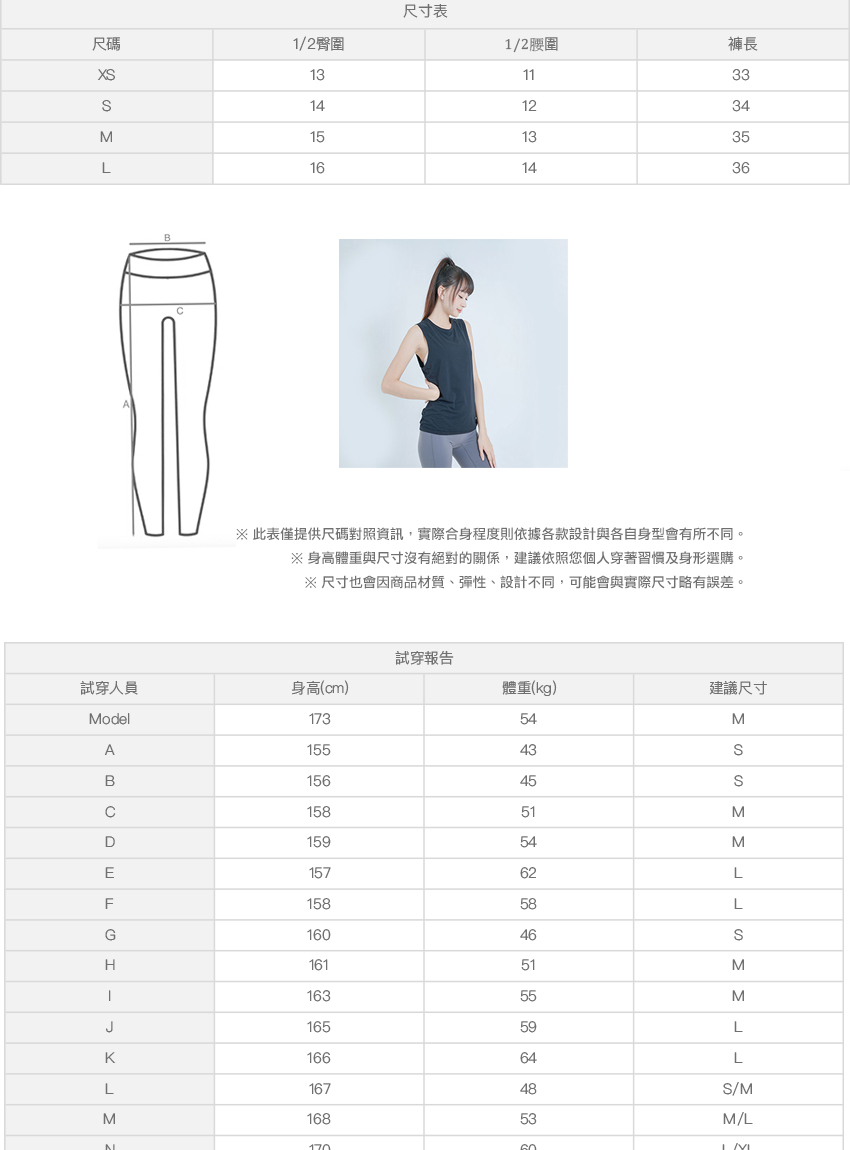 ※ 尺寸表及試穿報告僅提供尺碼對照資訊,實際合身程度則依據各款設計與各自身型會有所不同。