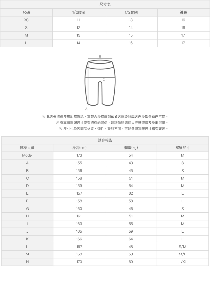 ※ 尺寸表及試穿報告僅提供尺碼對照資訊,實際合身程度則依據各款設計與各自身型會有所不同。